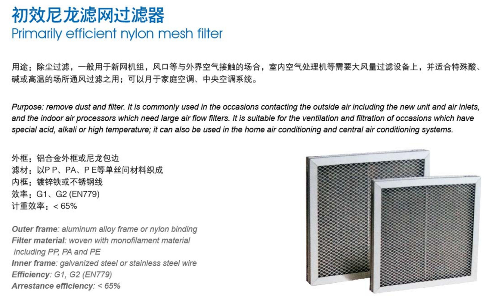 初效尼龍濾網(wǎng)過濾器