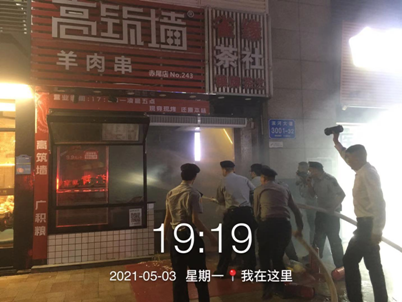 2021年5月3日正值五一長(zhǎng)假。晚上19時(shí)許,值班人員發(fā)現(xiàn)位于御景華城一樓商鋪“高筑墻”燒烤店內(nèi)冒出大量濃煙,經(jīng)查確定是店內(nèi)發(fā)生火災(zāi),立即通知中控啟動(dòng)火警火災(zāi)應(yīng)急預(yù)案。第一時(shí)間撥打119及上步消防隊(duì),上報(bào)管理處經(jīng)理和社區(qū)民警。應(yīng)急人員帶上裝備火速趕到現(xiàn)場(chǎng),在譚部長(zhǎng)現(xiàn)場(chǎng)指揮下疏散著火點(diǎn)二樓麻將館人員及現(xiàn)場(chǎng)圍觀群眾,利用就近3棟4棟一樓兩個(gè)消火栓進(jìn)行水槍滅火。明火在強(qiáng)大的水槍壓制下迅速被撲滅,經(jīng)查初步判斷此次火災(zāi)是由燒烤爐下面一條臨時(shí)排插線因靠燒烤爐太近絕緣層被破壞導(dǎo)致短路引起的火災(zāi)。